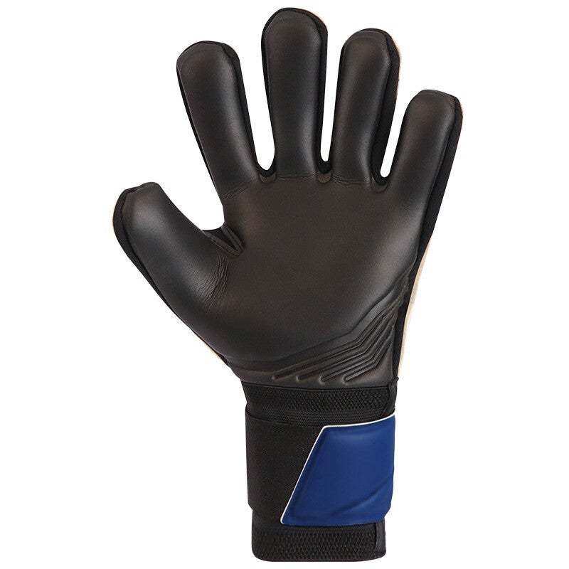 Met de keepershandschoen CHAMP SuperSoft NC kan je je volledig op de volgende aanval concentreren. De Wide Contact Negative Cut verhoogt aanzienlijk het balgevoel. Alle naden liggen aan de binnenkant van de handschoen. De verbredingen aan de binnenkant van wijsvinger en pink vergroten het opvangoppervlak. De combinatie van het vol-elastische bandage met de half-elastische sluitingsband laat de handschoen perfect rond de pols aansluiten en zorgt voor een stevige grip, zelfs bij hard geschoten ballen. De nieuwe 3 mm Duitse SuperSoft Grip werd in Duitsland geproduceerd en combineert hoge grip met lange houdbaarheid. De handrug en -palm bestaan uit dik, antislip latexmateriaal. Hier verhoogt individuele druk de bewegingsvrijheid. Moeilijke ballen vang je met betere precisie. Het actief ademende Micro Mesh zorgt voor een aangename verluchting van de hand. De handschoen is beschikbaar in de maten 7 - 12 en kleur royal/zwart/wit.