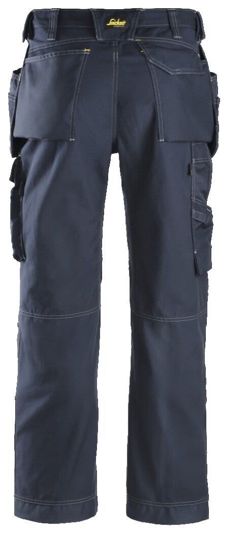 Werkbroek met holsterzakken gemaakt van duurzame en ademende katoen voor dagelijks werkcomfort. Versterkingen in kritieke gebieden zorgen voor een betere duurzaamheid en bescherming.