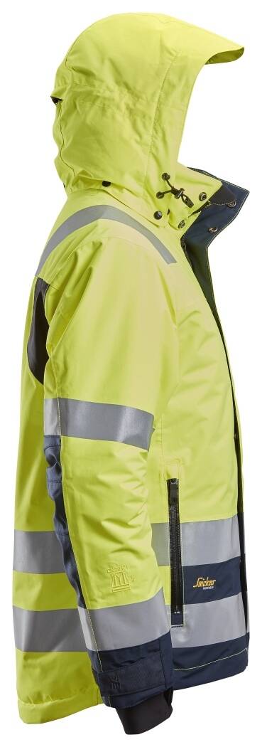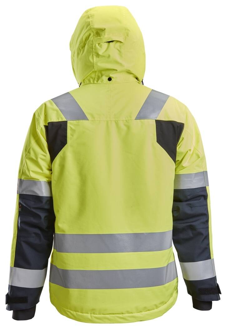 Warm en waterdicht high-vis werkjack gemaakt van een ademende 2-laags shell stof die gedurende de hele werkdag sneeuw, ijzel en regen buiten houdt. 37.5® vulling in combinatie met 3D-mesh voering aan de achterkant zorgt voor een efficiënte isolatie, terwijl voorgebogen mouwen en stretchpanelen aan de achterkant van de schouders zorgen voor een optimale pasvorm en beter bewegingsvrijheid. Met CORDURA® verstevigde ellebogen, afneembare capuchon en vuilafstotende elementen aan onderkant en mouwuiteinden. Opgestreken reflecterende accenten voor veilige en duurzame high-vis functionaliteit, Klasse 3.