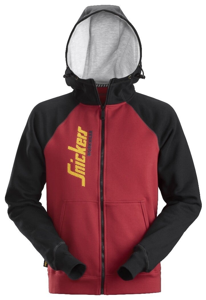Hoodie met volledige rits in een stijlvol tweekleurig blokdesign, ideaal voor dagelijks gebruik en de meeste typen werkzaamheden het hele jaar door. De hoodie is gemaakt van een dikke katoen-polyester mix met een geborstelde binnenkant die duurzaamheid, warmte en comfort biedt. Daarnaast is het kledingstuk voorzien van raglanmouwen voor extra bewegingsvrijheid en een gevoerde capuchon met trekkoord voor een optimale pasvorm. De hoodie wordt ook geleverd met duimgrepen in de mouwuiteinden, rits met rubberen trekker, kangoeroezak en een Snickers Workwear logo (geborduurd en gedrukt) bovenaan op de voorkant.