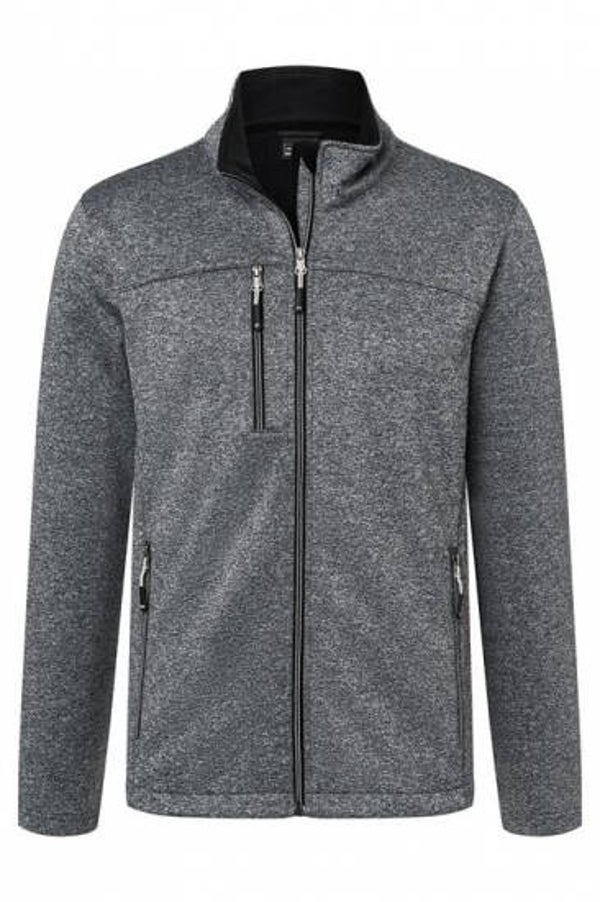 Softshell-jack in melange look. Aangename, zachte softshell met twee lagen . Contrasterende binnenkant van fleece . Doorlopende verdekte ritssluiting vooraan met kinbescherming . Opstaande kraag . 2 zijzakken en 1 borstzak met ritssluiting