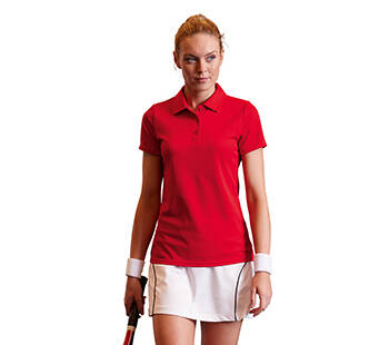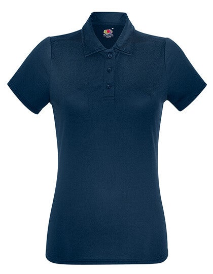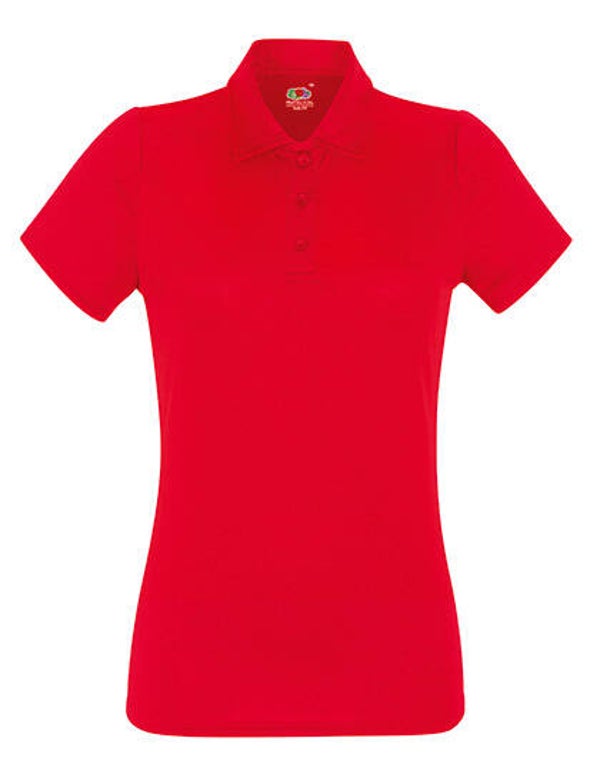 Fruit of the Loom Sport polo. 100% polyester. 140 g/m². Set-in mouwen, 3-knoopssluiting, ademend en vochtregulerend.
