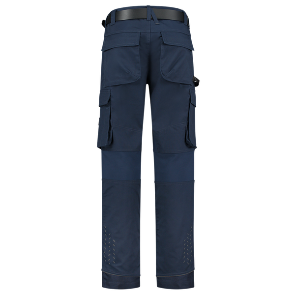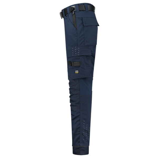 De worker onder de werkbroeken: De werkbroek Twill Cordura Stretch is een luxe worker welke je zelfs na een lange werkdag niet uit wilt trekken. De broek heeft een soepele mechanische stretch in het doek en 4-way stretch delen bij de knieholten en in het kruis. Dit maakt de bewegingsvrijheid in deze broek optimaal! De taille is naar wens aan te passen middels een elastische band in de taille. Bij Tricorp kleden wij elke professional: lang, kort, dik en dun: de worker is daarom verkrijgbaar in 3 lengtematen. Tevens is de zoom 6 cm verlengbaar. De worker biedt met diverse zakken genoeg opbergruimte voor het gereedschap dat je bij je draagt tijdens het uitvoeren van het werk. Je sluit de broek met een verdekte knoop, waardoor je tijdens het werken niet gehinderd wordt door een uitstekende knoop. De reflectie print zorgt voor extra zichtbaarheid. Match de broek met de bijpassende verstelbare swingpockets, te bevestigen aan de riemlussen aan voor- en zijkant. Kniekussens kunnen op meerdere hoogtes worden aangebracht in de Cordura kniestukken.