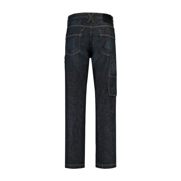 Deze stevige jeans heeft drievoudig gestikte naden, een duimstokzak en een hamerlus. De jeans biedt genoeg ruimte op het gereedschap op te bergen. De jeans heeft een dubbele achterzak waarvan 1 afsluitbaar. Door de vier verschillende lengtematen kan de jeans door bijna elke professional worden gedragen.