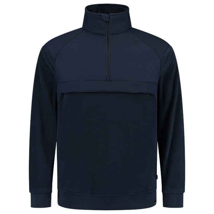 De duurzame Sweater Anorak RE2050 heeft een sportieve en moderne belijning. Het anorak design is volledig nieuw! De body en mouwen van de sweater zijn van microfleece in combinatie met een stretch ribstop op de schouderpartij en een gedeelte van het voor- en achterpand. Daarnaast heeft de sweater een grote borstzak die afsluitbaar is met een rits. Op de rug heeft de sweater een ventilerende meshvoering wat het werken in deze trui extra comfortabel maakt. Verdekt in de zijnaden zitten nog twee met rits afsluitbaar zakken voor extra opbergruimte. De reflective piping langs de ritssluiting en langs de zakopening op het voorpand geeft de sweater een sportieve en moderne look. De Sweater Anorak RE2050 is onderdeel van het RE2050 kledingpakket: een duurzaam en circulair kledingpakket. Deze sweater is gemaakt van 100% recycled polyester en 100% recycled polyamide voor het contrastdoek. Dankzij het gebruik van recyclede grondstoffen verbruiken we zo’n 90% minder water tijdens de productie dan bij een sweater van virgin polyester! Dit item is verkrijgbaar in de kleuren Ink en Black en in de brede maatrange XS-5XL