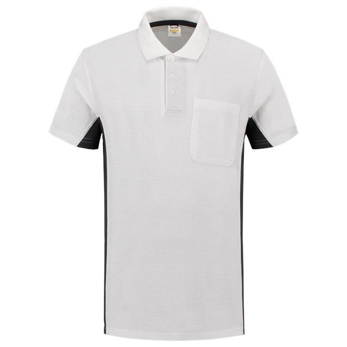 Het Poloshirt Bicolor Borstzak van Tricorp is een van de meest gedragen kledingstukken op de werkvloer. Door de twaalf kleurcombinaties zijn de poloshirts eenvoudig te matchen met de huisstijl van jouw bedrijf. Dit eigentijdse model beschikt over enkele mooie details, zoals een borstzakje, een 3-knoopssluiting en zijsplitjes. Het Tricorp poloshirt heeft een nette kraag, korte mouwen en is gemaakt van 50% gekamd katoen en 50% polyester. De kleur en vorm van het Poloshirt Bicolor blijft lang behouden door het kleur- en vormvaste materiaal.