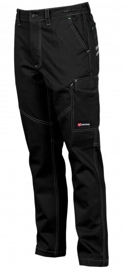 All-season unisex stretchbroek, elastische zijbanden en riemlussen in de taille, sluiting met rits en kunststof knoop, twee voorzakken met klassieke snit, een zijzak met LOCK SYSTEM, een duimstokzak, twee achterzakken, een open zak en een met overslag en klittenband, kruis en binnenkant pijp met drievoudig gestikte naad. Contrasterende inzetstukken en stiksel, reflecterende banden op achterzak, drievoudig gestikte naden.