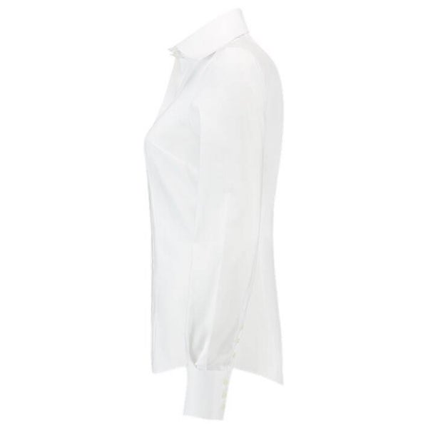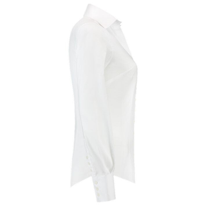 Deze stretch blouse heeft een fitted pasvorm. De blouse heeft een hoogsluitende knoopsluiting en een 3 knoops manchet. De anti-bacteriële en anti-odor finish zorgen ervoor dat geurtjes geen kans krijgen.